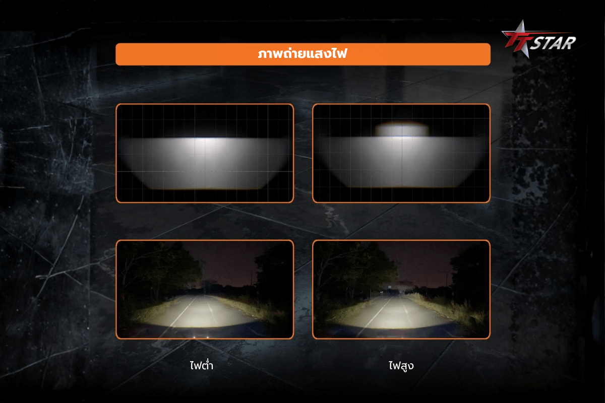 โครงสร้าง 3 เลนส์ในตัว (3-Lens Structure) นี่คือจุดเด่นที่แตกต่าง ไฟเสริมทั่วไปมักมีเลนส์เดียว แต่ EXTRA 3 รวมเลนส์ 3 ดวงเข้าไว้ด้วยกัน ทำให้เกิดการรวมแสงที่เข้มข้น และสร้างความหนาแน่นของลำแสงได้เหนือกว่า โดยเฉพาะเมื่อเปิดใช้งานไฟสูง (High Beam) แสงจะพุ่งไกลและกว้างขึ้นอย่างเห็นได้ชัด