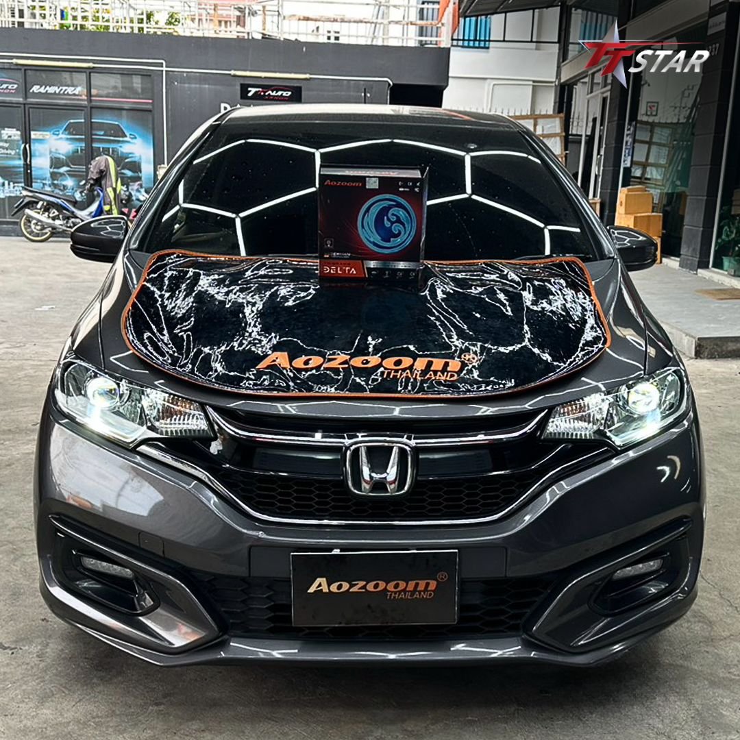 Jazz GK เป็นรถที่ขับดี คล่องตัว แต่จุดที่เจ้าของรถหลายคนบ่นตรงกันคือ ไฟหน้าเดิมสว่างไม่พอ โดยเฉพาะถนนต่างจังหวัดหรือขับกลางคืนบ่อย ๆ งานนี้เลยอัปเกรดเป็น AOZOOM DELTA เพื่อแก้ปัญหาแบบตรงจุด